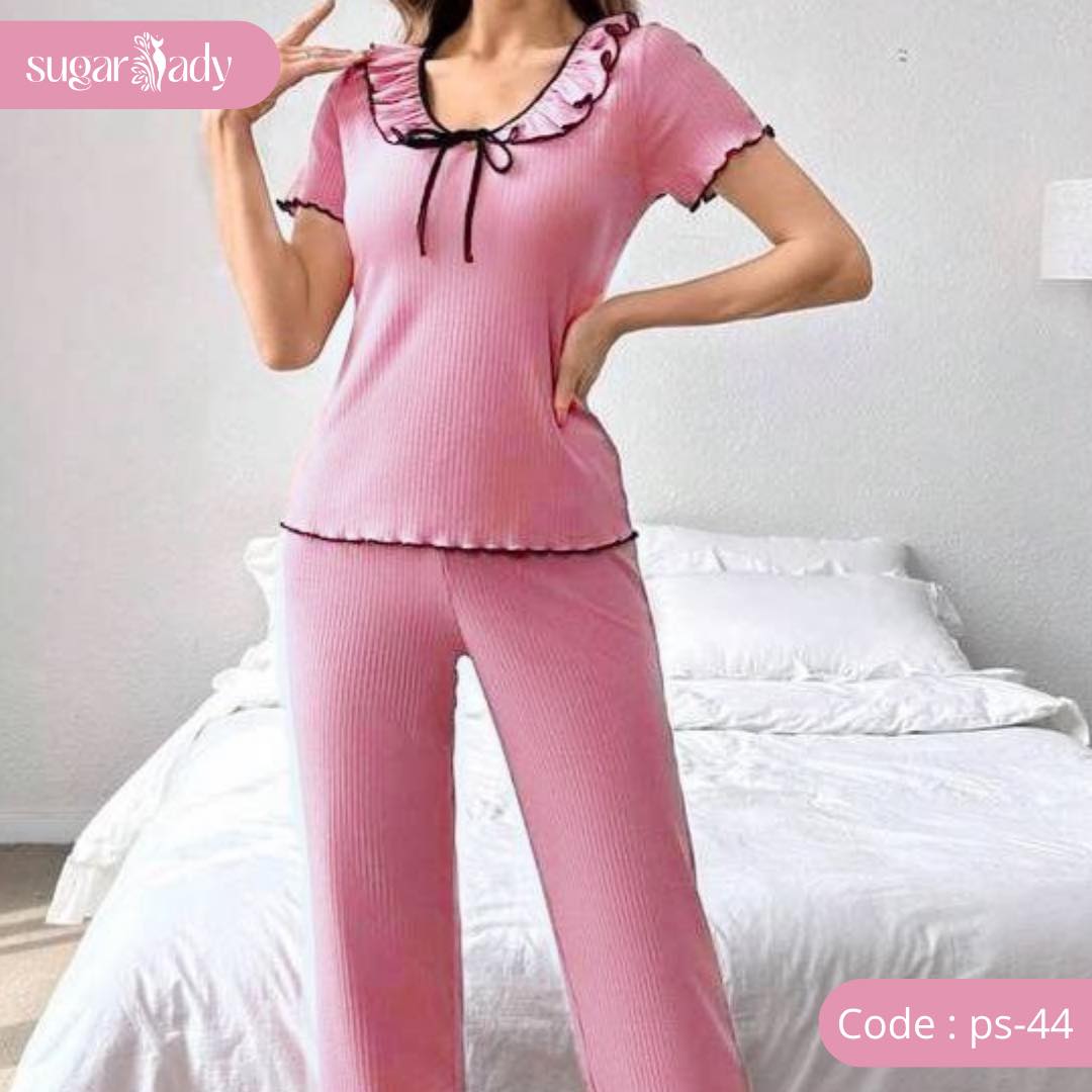 تألقي براحة لا توصف مع بيجامه خريفى صيفى المصنوعه من قطن ريب ليكرا ١٠٠%، خامة ناعمة ودافئة تناسب الأجواء المتغيرة.